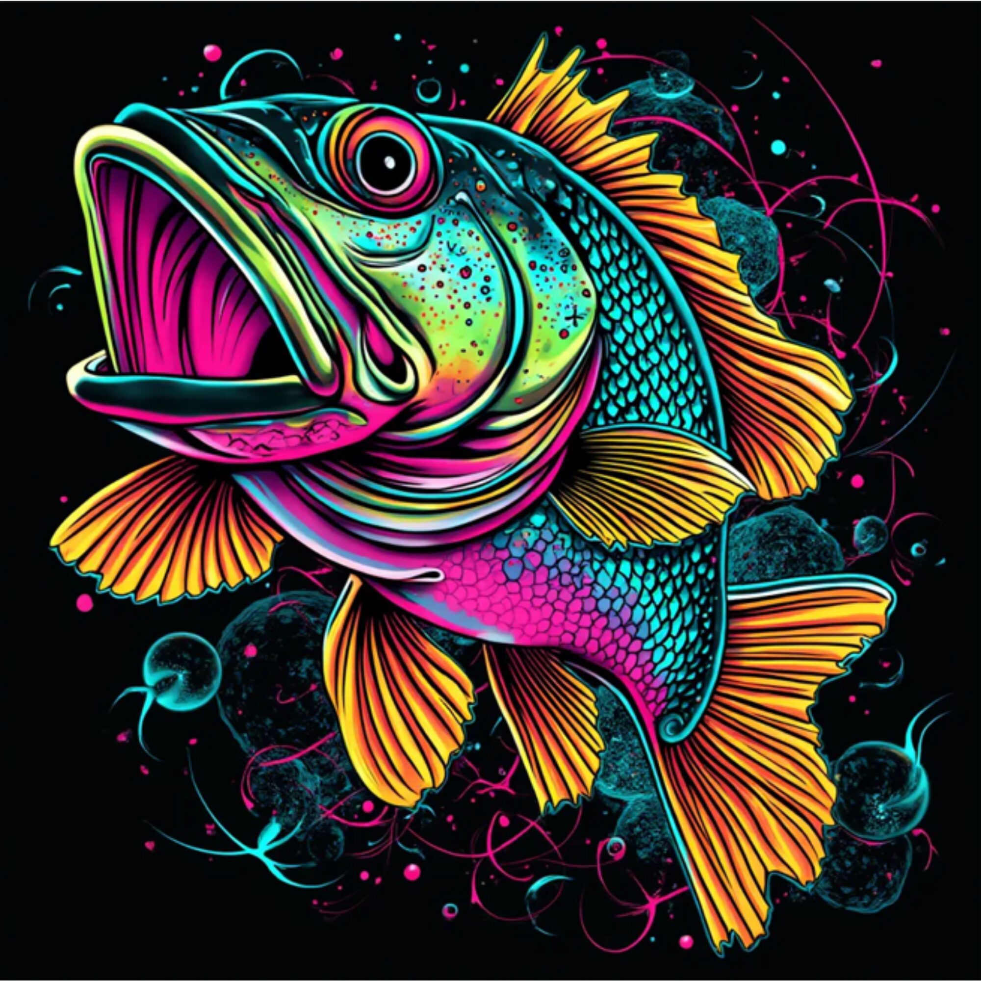 Psychedelic Largemouth Bass Digital Print Bundle – 5 High-Resolution Sizes